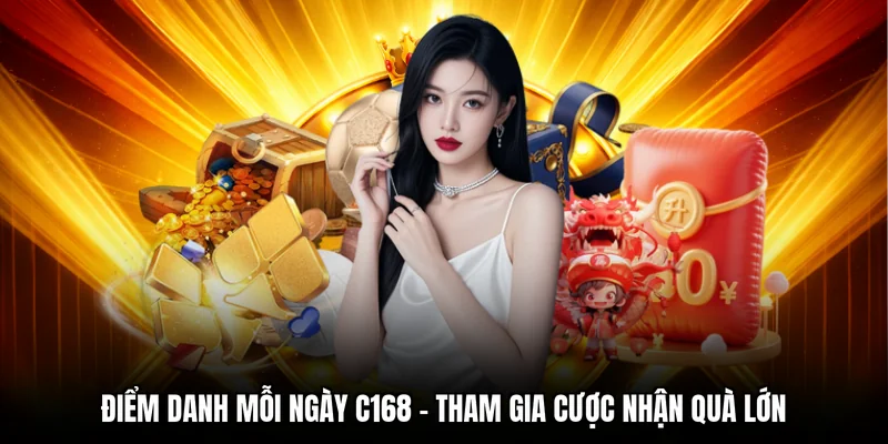 Điểm danh mỗi ngày tại C168. là chương trình khuyến mãi dành cho người chơi đăng nhập hệ thống và thực hiện điểm danh liên tục theo từng ngày. Mỗi lần điểm danh thành công, thành viên sẽ nhận được một khoản tiền thưởng hoặc phần quà tương ứng với ngày đăng nhập.